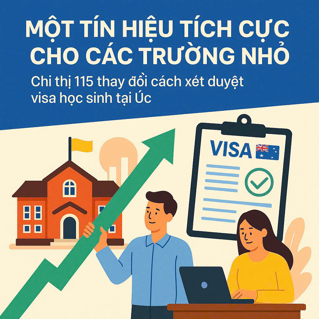 Rất lâu rồi mới thấy có một tin tốt dành cho những trường có quy mô nhỏ. Theo Chỉ thị 115 (Ministerial Direction 115 – MD115), Chính phủ Úc sẽ áp dụng cách xét duyệt visa học sinh theo tiêu chuẩn mới, thay thế cho hệ thống cũ (Direction 111) vốn bị chỉ trích là thiên vị các trường lớn và gây mất cân bằng trong thị trường du học.