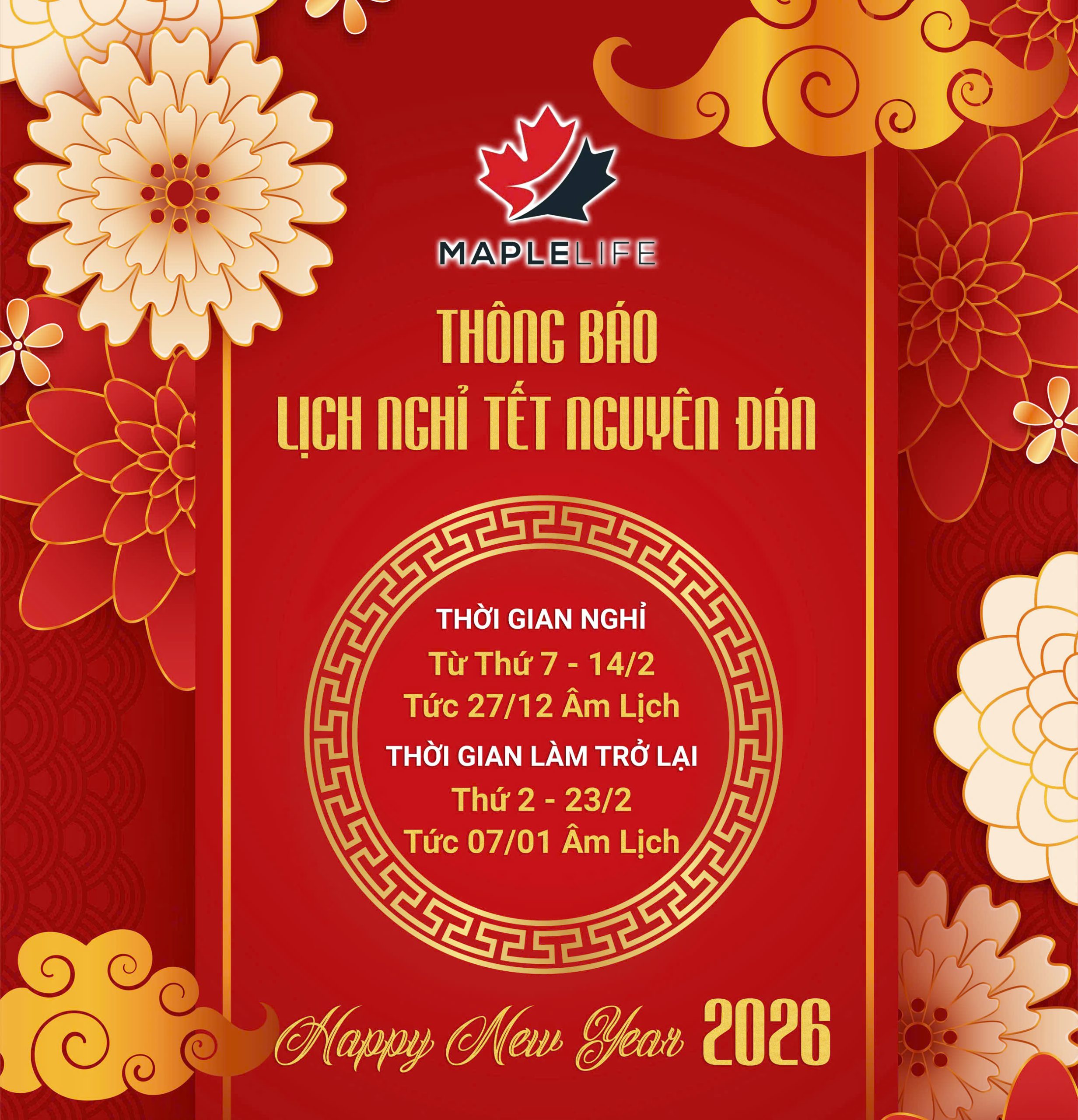Thân gửi Quý Khách Hàng và Quý Đối Tác, Nhân dịp Tết Nguyên Đán Bính Ngọ 2026 đang đến gần, Du học Maple Life xin trân trọng gửi đến Quý Anh/Chị và Gia đình lời chúc Năm Mới An Khang Thịnh Vượng – Phát Tài Phát Lộc – Cát Tường Như Ý. Du học Maple Life xin trân trọng thông báo đến Quý Khách Hàng và Quý Đối Tác lịch nghỉ Tết Nguyên Đán như sau: Thời gian nghỉ: Từ ngày 14/02/2026 đến hết ngày 22/02/2026 Thời gian làm việc trở lại: Thứ Hai, ngày 23/02/2026 Trong thời gian nghỉ lễ, việc phản hồi thông tin có thể chậm hơn so với thường lệ. Rất mong nhận được sự thông cảm từ Quý Khách Hàng và Quý Đối Tác. Kính chúc Quý Anh/Chị cùng Gia đình một kỳ nghỉ Tết thật đầm ấm, an vui, chào đón Năm Bính Ngọ với nhiều sức khỏe, hạnh phúc, vạn sự hanh thông và Mã Đáo Thành Công.